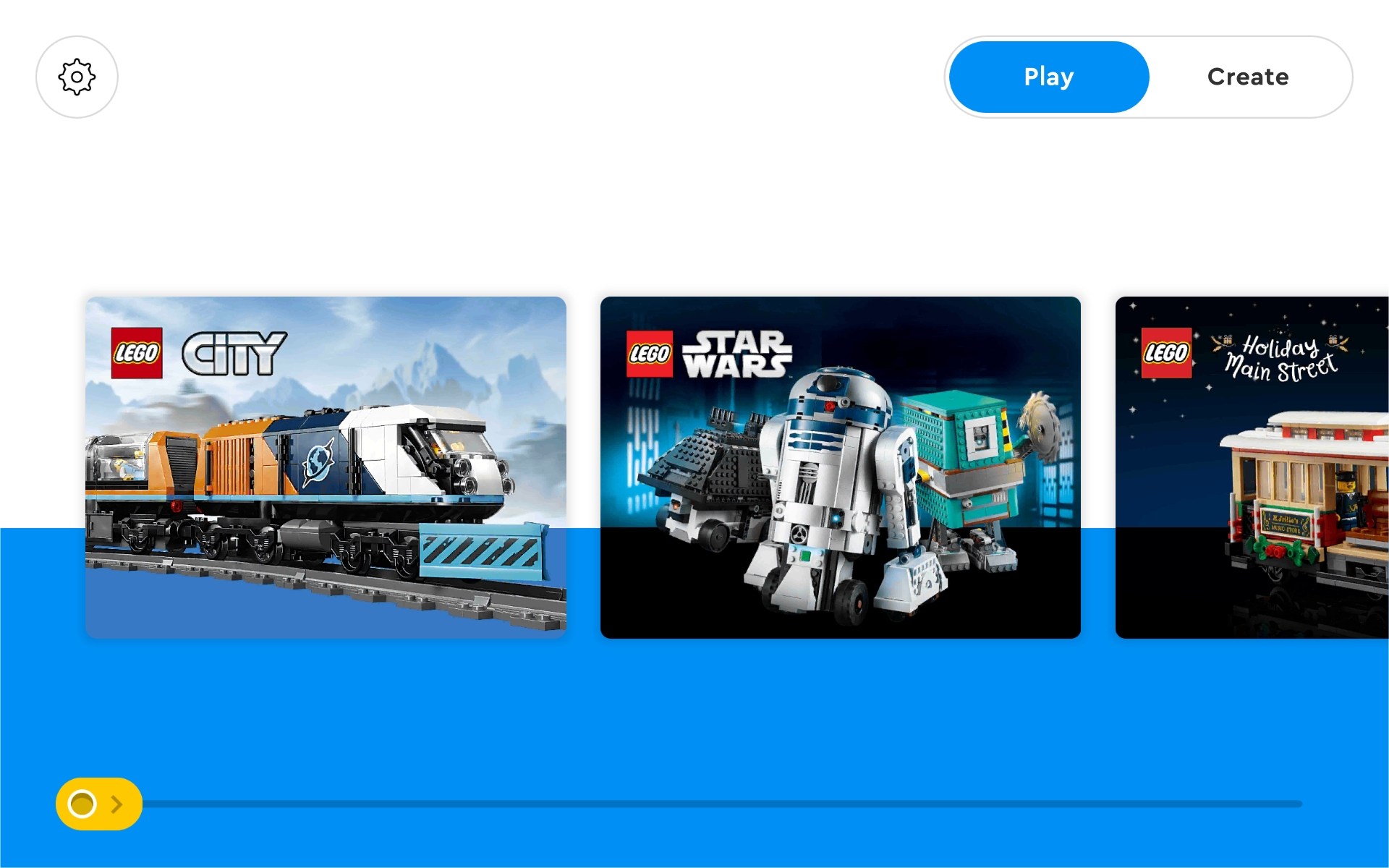 Once you download and install a Lego app on your device, you can launch it to start the play experience. This is the opening screen for my PoweredUp app.