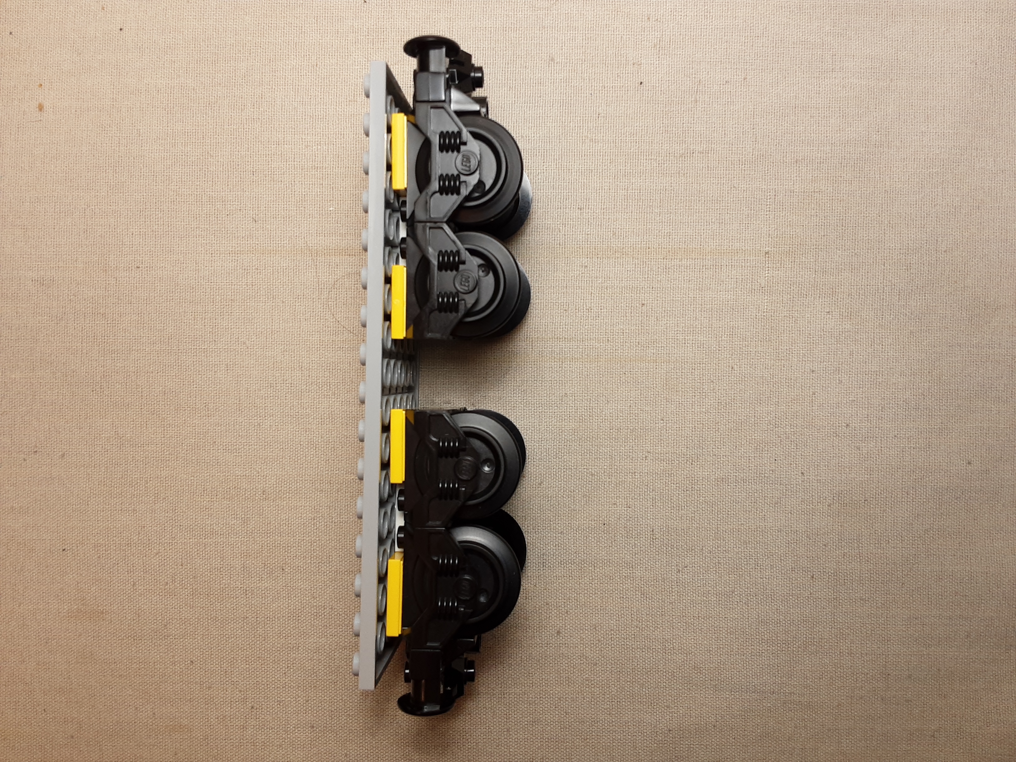 Although the use of a Turntable to secure the bed plate to the wheel assembly works pretty well for most train cars, its disadvantage is that too much vibration or uneven weight distribution can cause it to disconnect. So for a more durable connection, we can use a Bogie Plate.