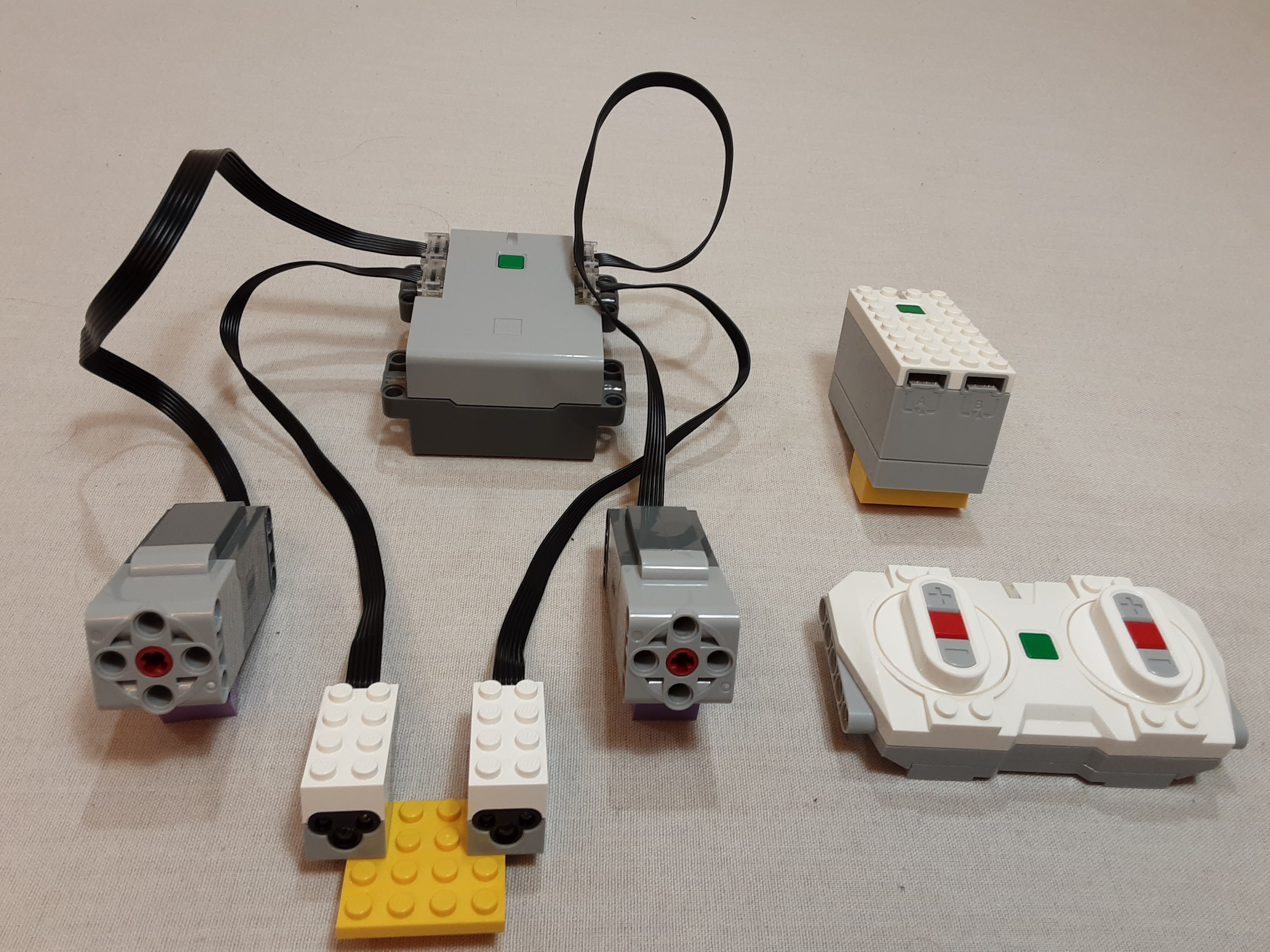 The Hub is the foundation of the PU system. This hub is the battery box and the Bluetooth receiver to get commands from the app. Unlike Boost, the hub has no internal motors although it does have an internal tilt sensor. Either hub can accept devices which include motors, lights, and sensors. The motors and lights are similar to their Power Functions cousins in operation but PF devices are not compatible with PU due to the different connectors.