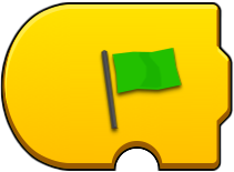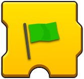 This group of blocks START their attached program execution. The 'green arrow only' block starts the code segment when it is clicked (touched), while the other two green arrow blocks delay execution until their conditional option is met. The green flag block starts a sub program when its 'trigger' number is encountered in other program segments. |