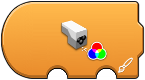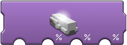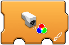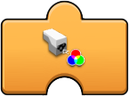 The intensity of an attached LED string can be controlled by the first block. Here the first option is the port and the '%' option is the percentage of intensity, 0 (off) to 100 (brightest). The status light color of the hub can be changed with the second or third block, with the port being the first option of both. The 'paintbrush' option allows a color to be choosen from a color picker menu. The three '%' options allow an RGB color value to be specified, using percentage (0-100) rather than an actual value (0-255). The sensor light color block also has a 'paintbrush' option with a color picker menu. |