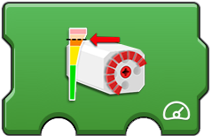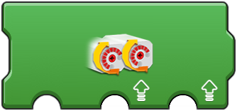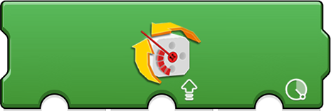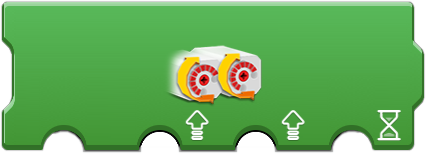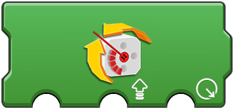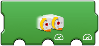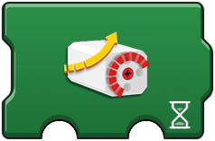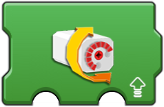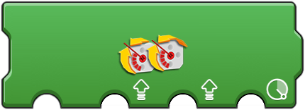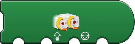 These provide a way to control a pair of motors. The first option is the port of the two motors, such as AB (A and B) or AC (A and C). The second and third 'meter' options sets the speed (power) for the first and second motor respectively. This can be useful to synchronize or differentiat motors. The 'speed and steering' icon is useful to control two wheel vehicles (such as those using tracks like a tank or large construction vehicle). The second option (upward arrow) is for the speed (power) of both motors. The third option (steering wheel) controls what influence is applied to adjust the speed of one motor to cause a turning motion. The fourth option sets the directional difference between the motors. This action runs forever (note the rounded right edge), but constantly checks the second and third options for changes allowing for movement control. This is useful as single code block method to control a vehicle. |
