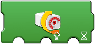 Notice the plain white motor face on the icons, this indicates no specific motor type, so these work for all motors (in theory). The first option is the port. Notice the 'meter' icon as the second option which is the speed (power) value. 'Float' (red square in icon) means that power is removed from the motor, although it can still move a bit via inertia. 'Stop' (red square with ! in icon) implies a brake is applied to actually stop the motor. |